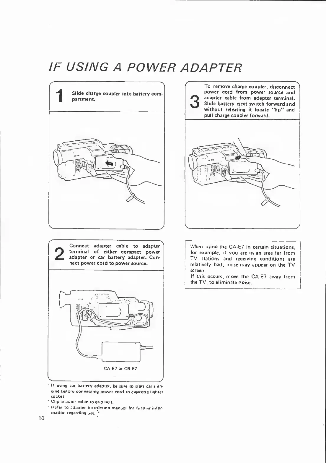 Canon VM-E70 - IF USING A POWER ADAPTER; Connecting the Power Adapter; Removing the Charge Coupler; Power Adapter Notes