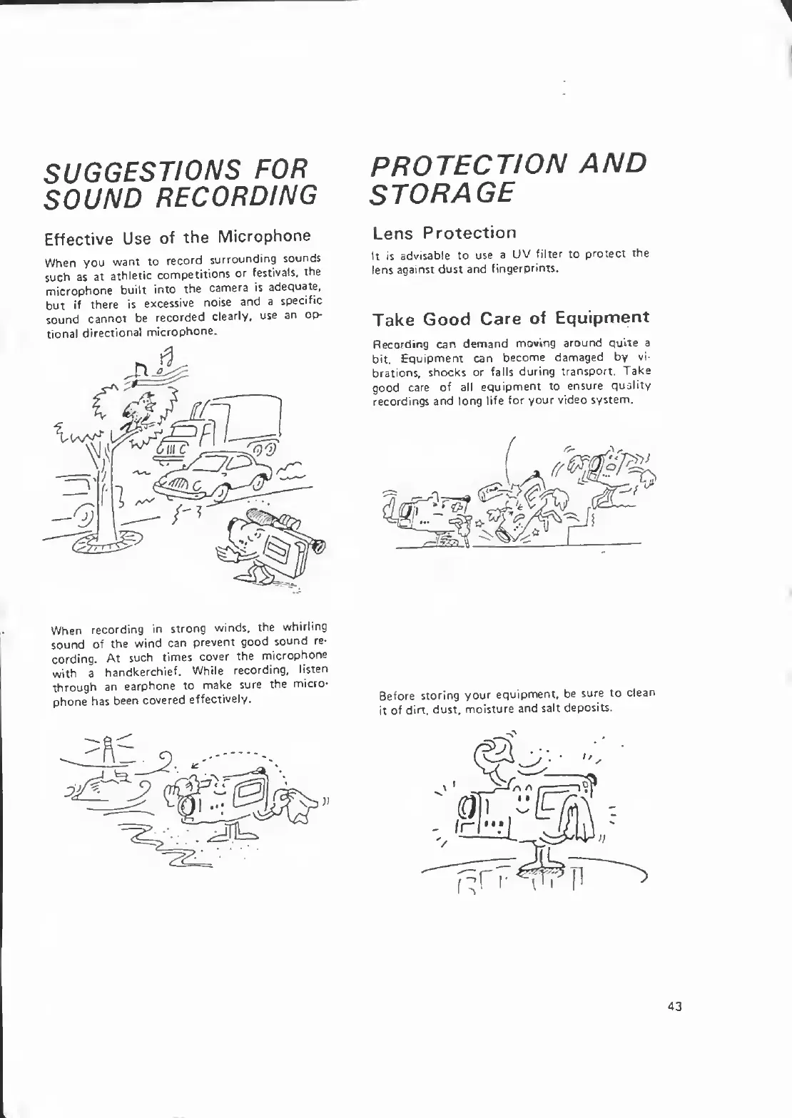 Canon VM-E70 - SUGGESTIONS FOR SOUND RECORDING; Effective Use of the Microphone; PROTECTION AND STORAGE; Lens Protection