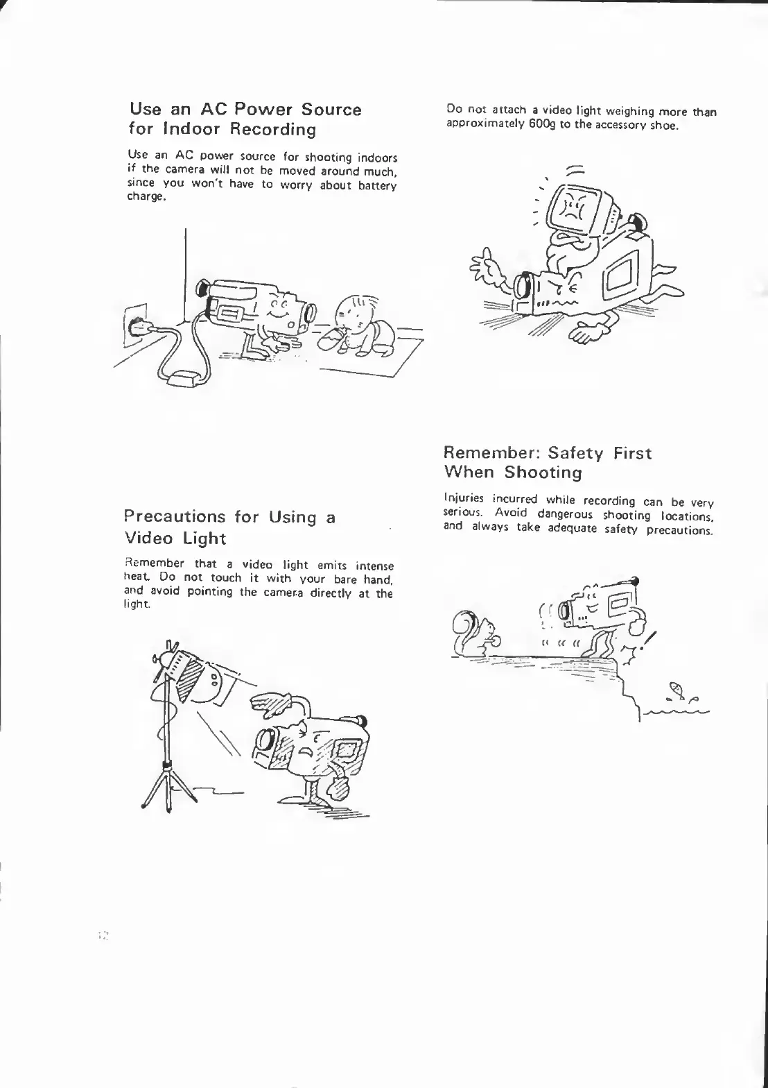 Canon VM-E70 - OPERATIONAL TIPS; AC Power for Indoor Recording; Video Light Precautions; Safety During Shooting