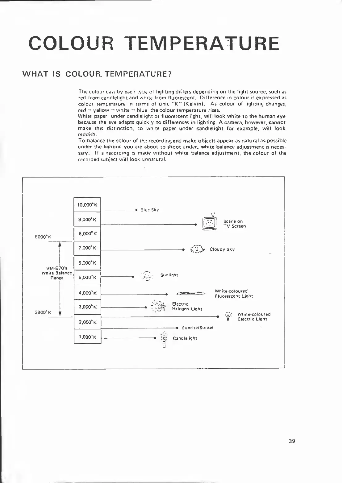 Canon VM-E70 - COLOUR TEMPERATURE; Understanding Colour Temperature; White Balance Adjustment