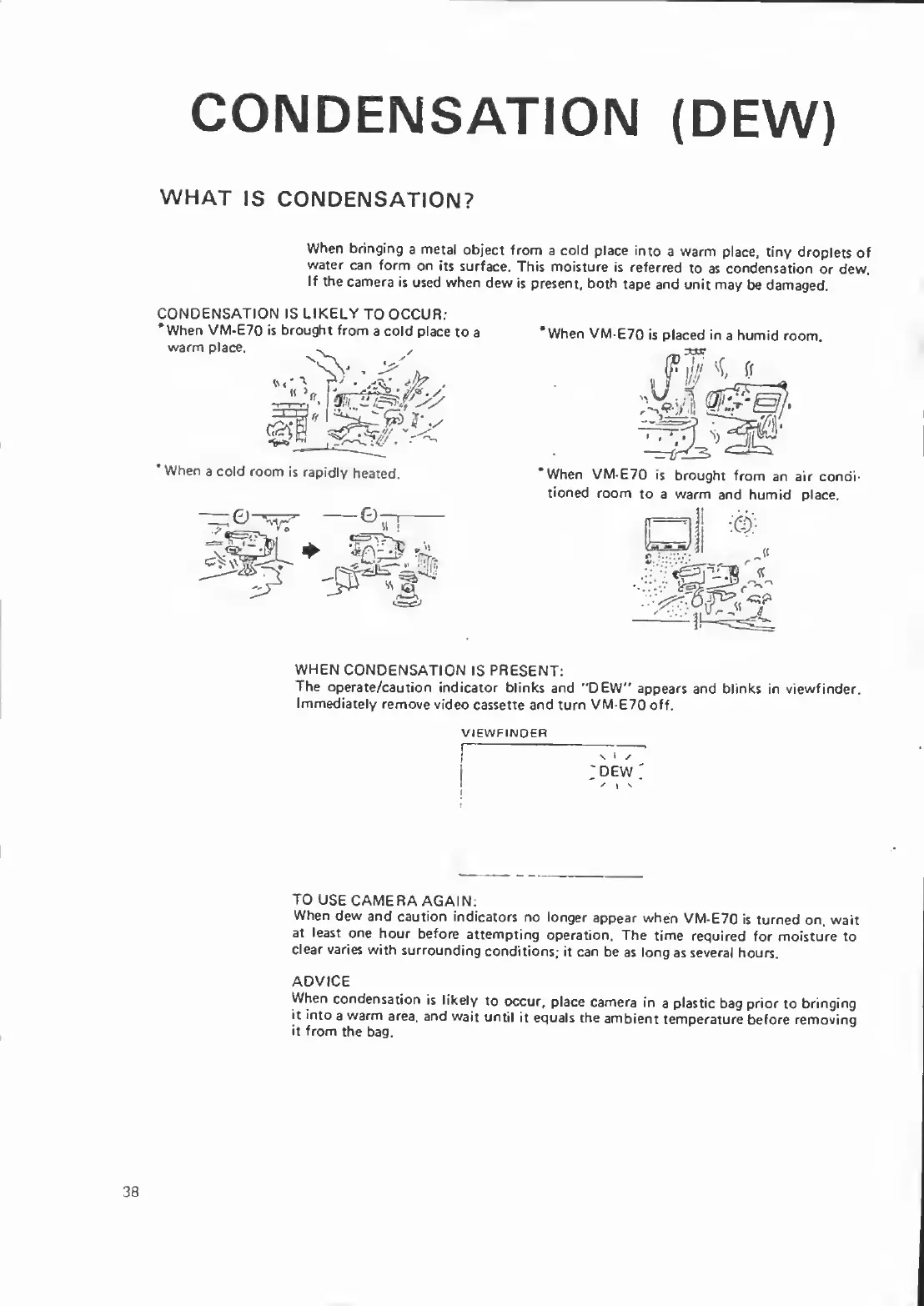 Canon VM-E70 - CONDENSATION (DEW); Understanding Condensation; When Condensation is Likely; Handling Condensation