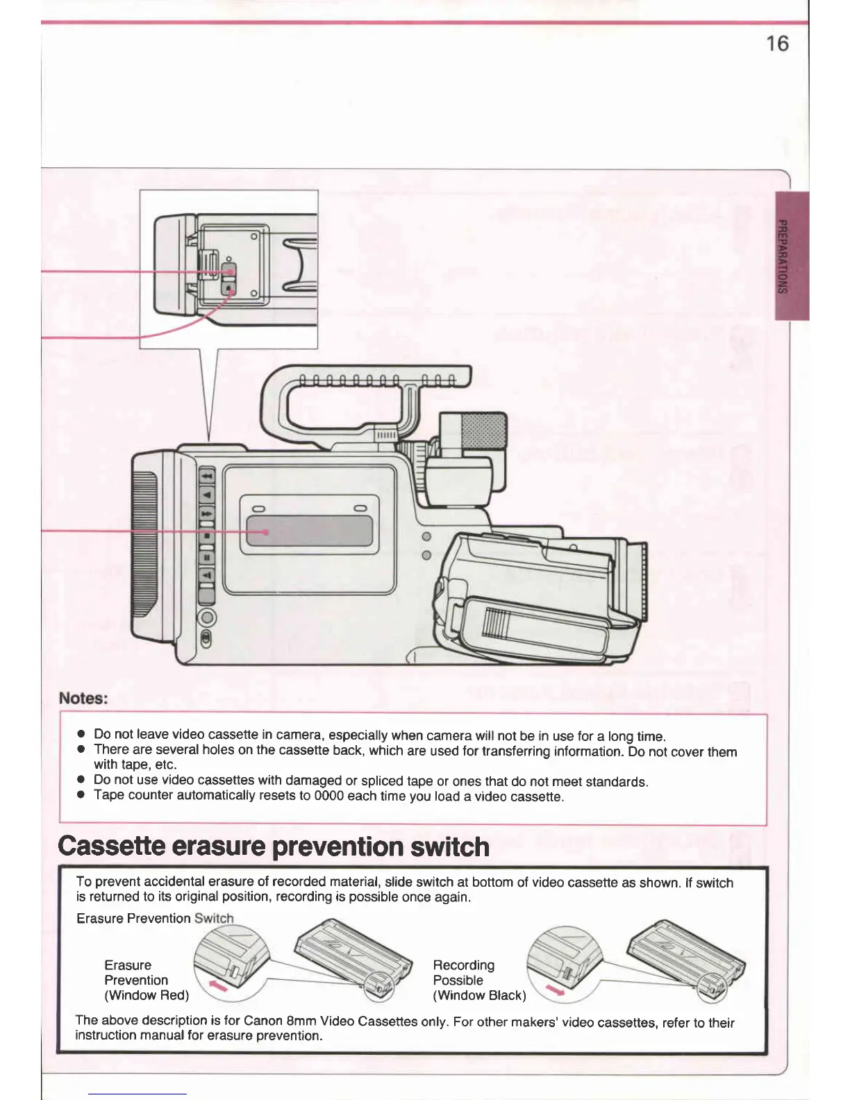 Canon VM-E708 - Camera Recording Procedure; Attaching Power Source; Loading Video Cassette; Setting Tape Speed and Camera Mode