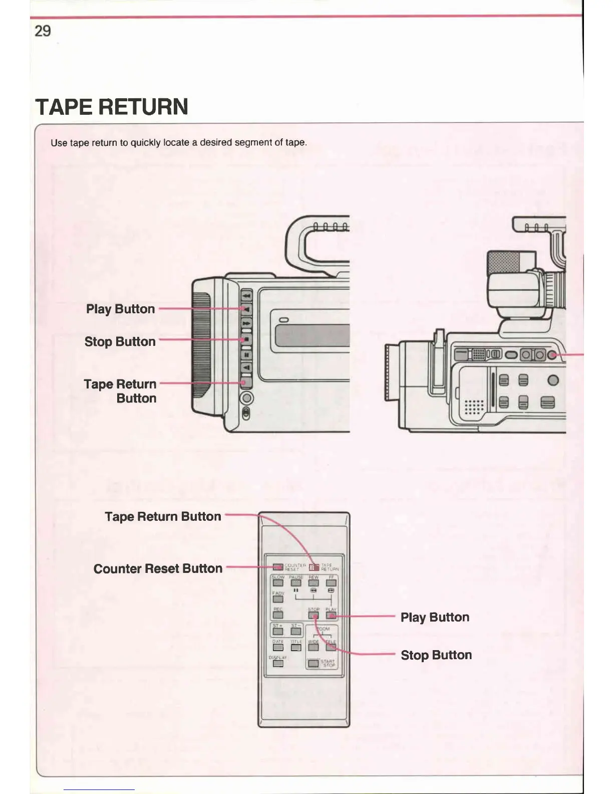 Canon VM-E708 - Counter Reset and Tape Return; Counter Reset Function; Tape Return Function