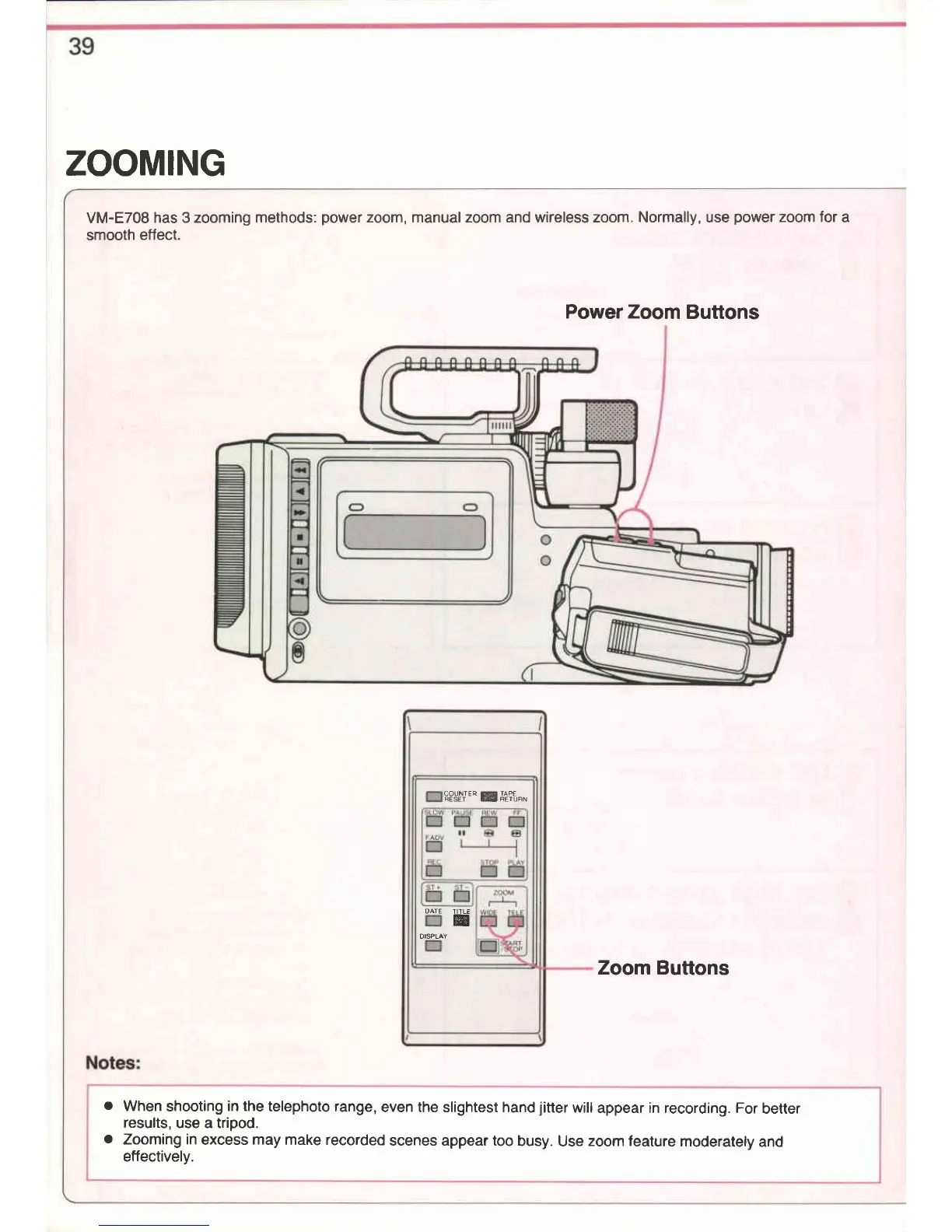 Canon VM-E708 - Power Zoom; Using Power Zoom; Manual Zoom; Performing Manual Zoom