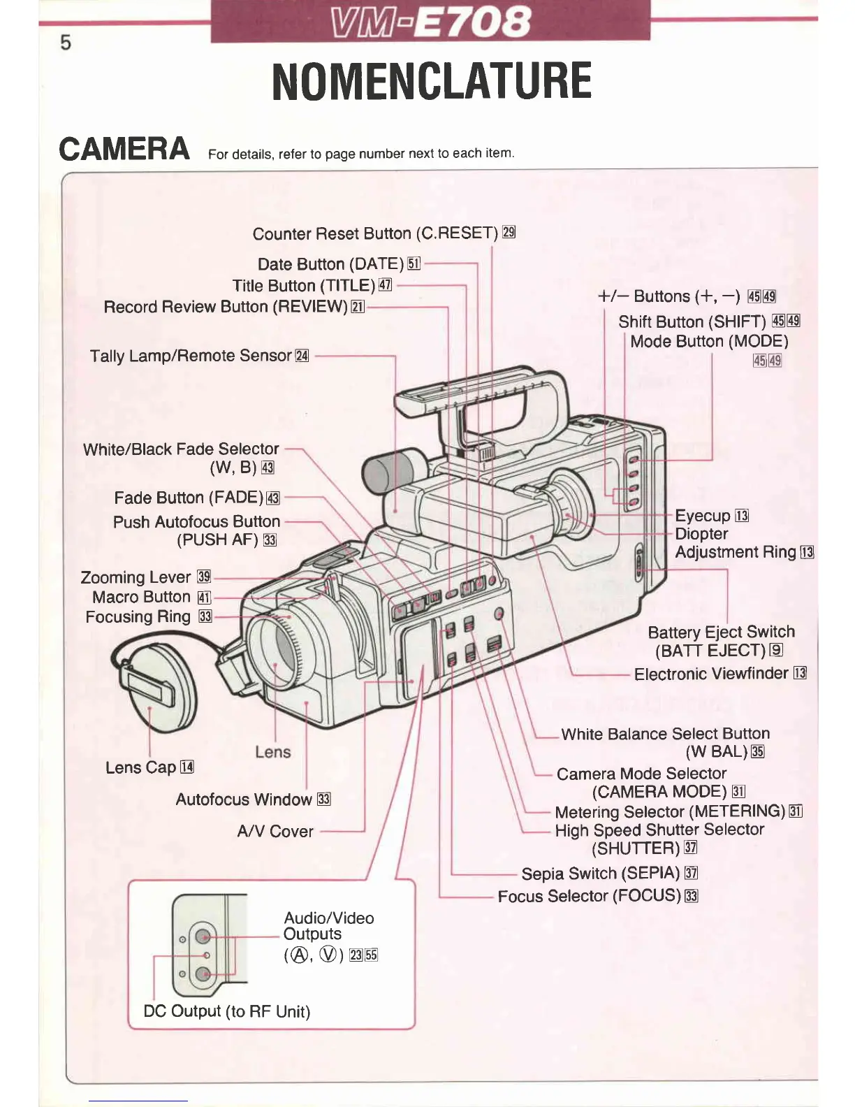 Canon VM-E708 - VM-E708 Nomenclature; Camera Components Diagram