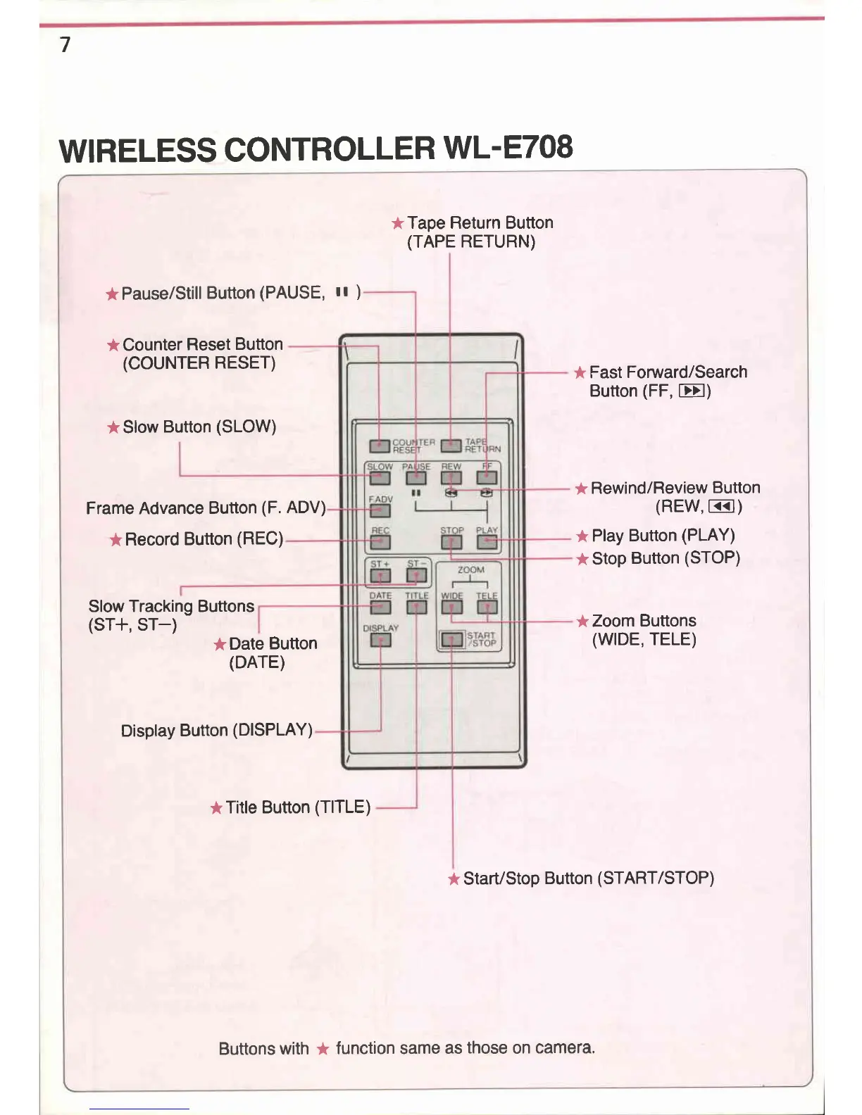 Canon VM-E708 - Wireless Controller WL-E708; Operation and Functions