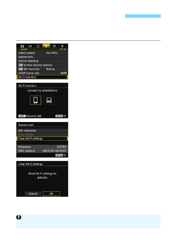 All Wi-Fi function settings can be deleted. By deleting the Wi-Fi function