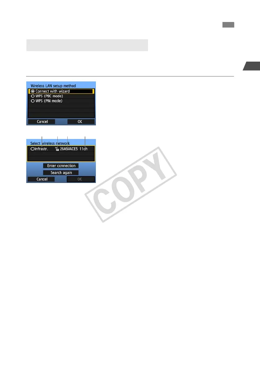 When you select [Connect with wizard], active wireless LAN devices in your area are listed,