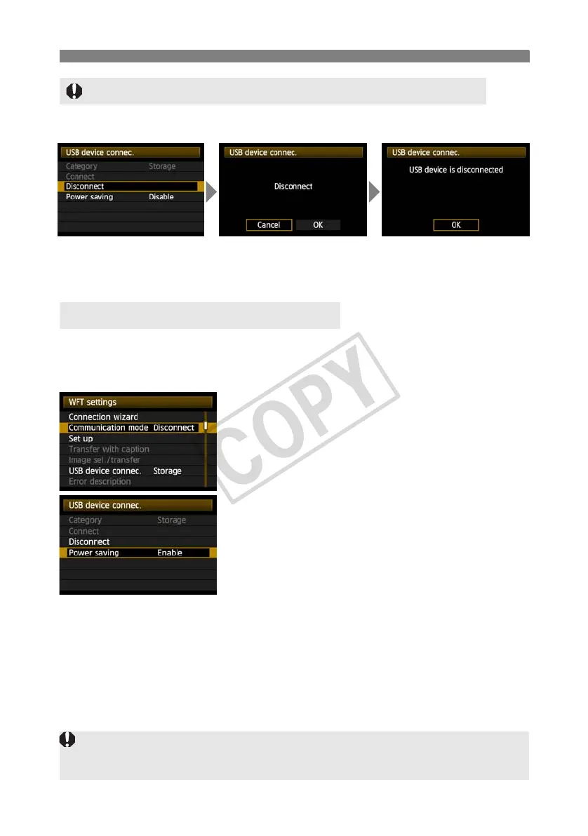 Before unplugging external media from the USB port, always select [Disconnect] as shown in