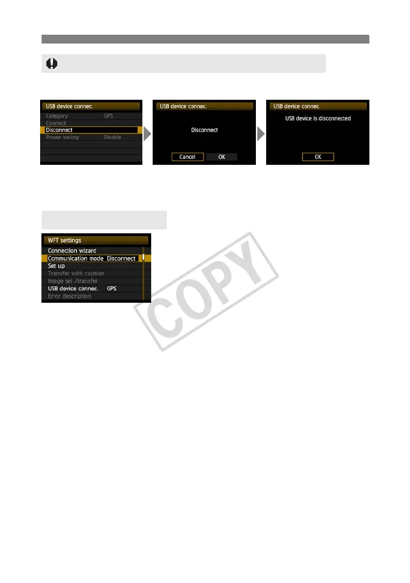 Before unplugging GPS devices from the USB port, always select [Disconnect] as shown in