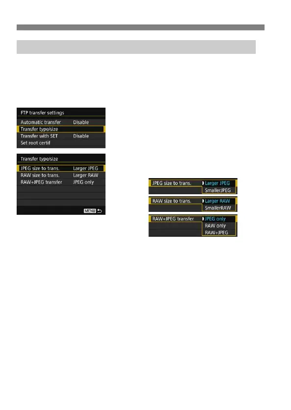 Select [Transfer type/size] in step 5 on page 44 to select the size or