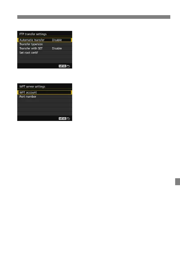 Canon WFT-E8A - FTP Transfer Settings; WFT Server Settings