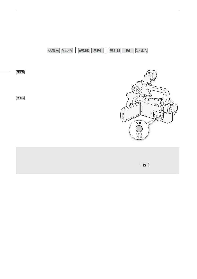 Repeatedly press the DISP. button to turn the onscreen displays on/off in the following