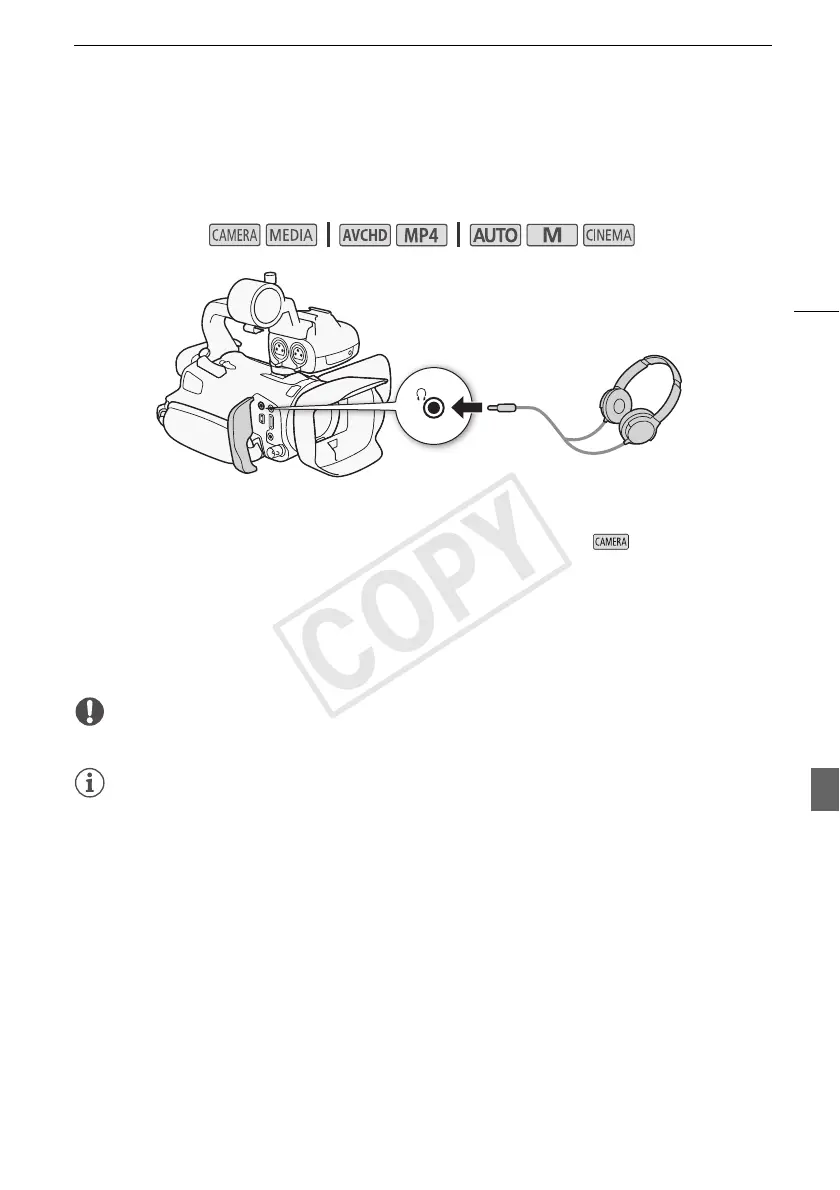 Use headphones for playback or to check the audio level while recording. The following procedure