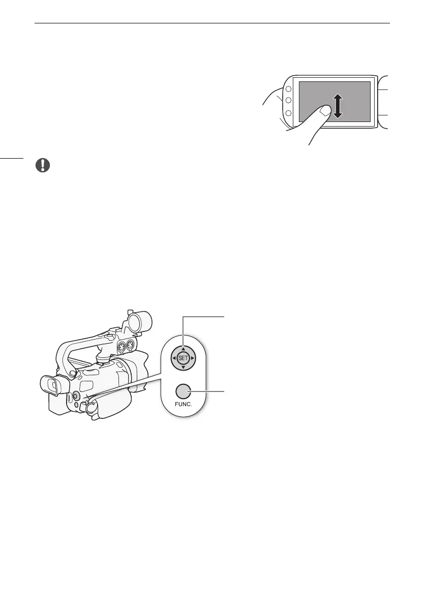 You can navigate some of the camcorder’s menus and screens using the FUNC. button and joystick