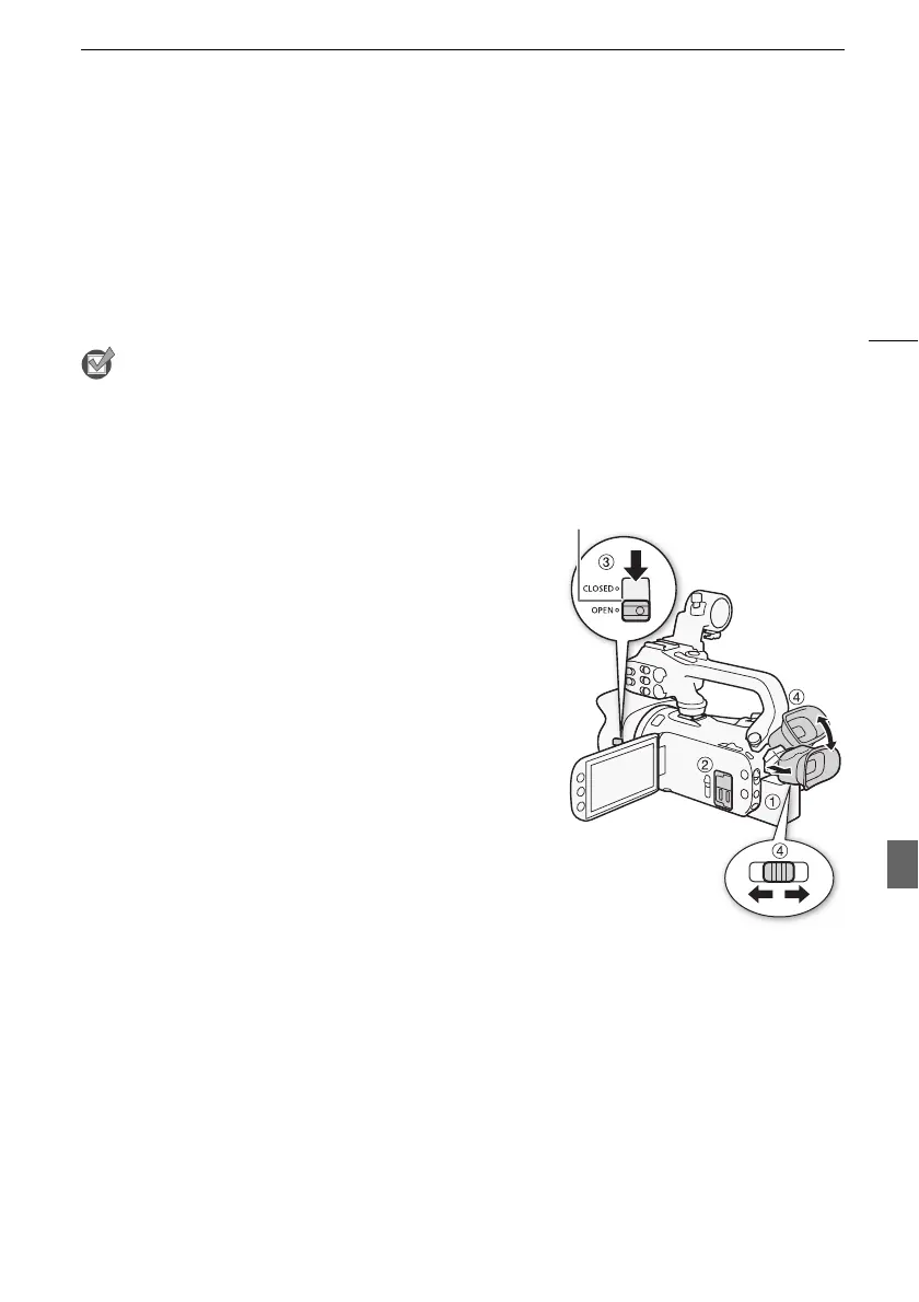 4 If you need to use the viewfinder, pull it out and adjust it,