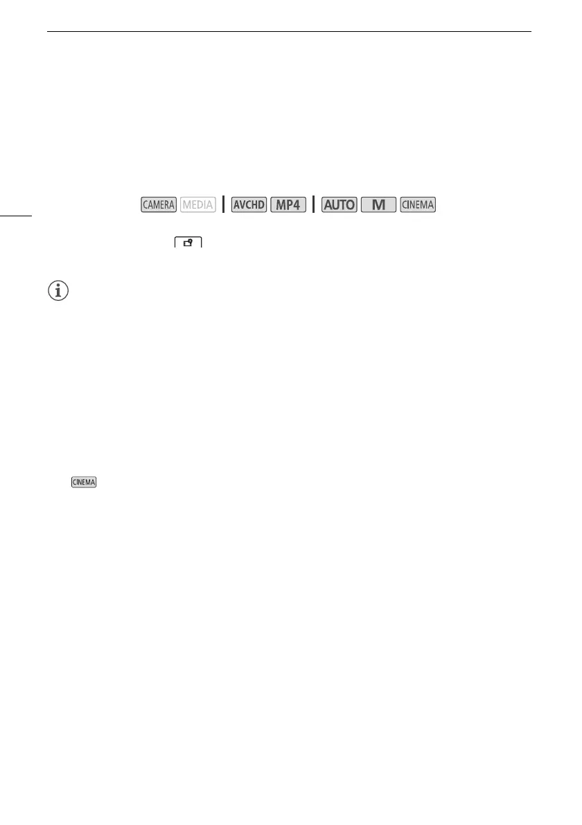 • In mode, 28 Mbps (AVCHD) and 35 Mbps (MP4) recording modes are not available.