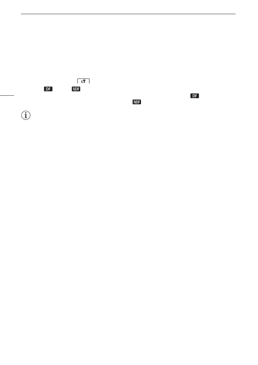 • The time code’s display will differ depending on the setting. If you selected [ DF], the time