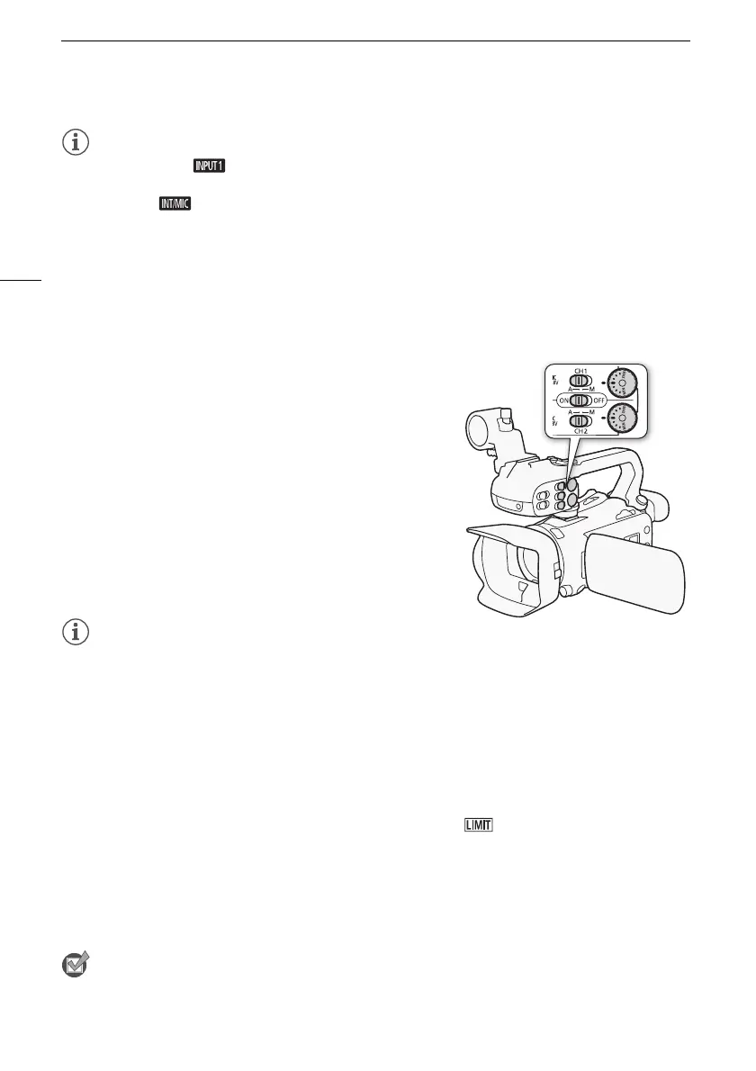 • Even if you select [ INPUT 1], the audio recording level will be determined by the audio level