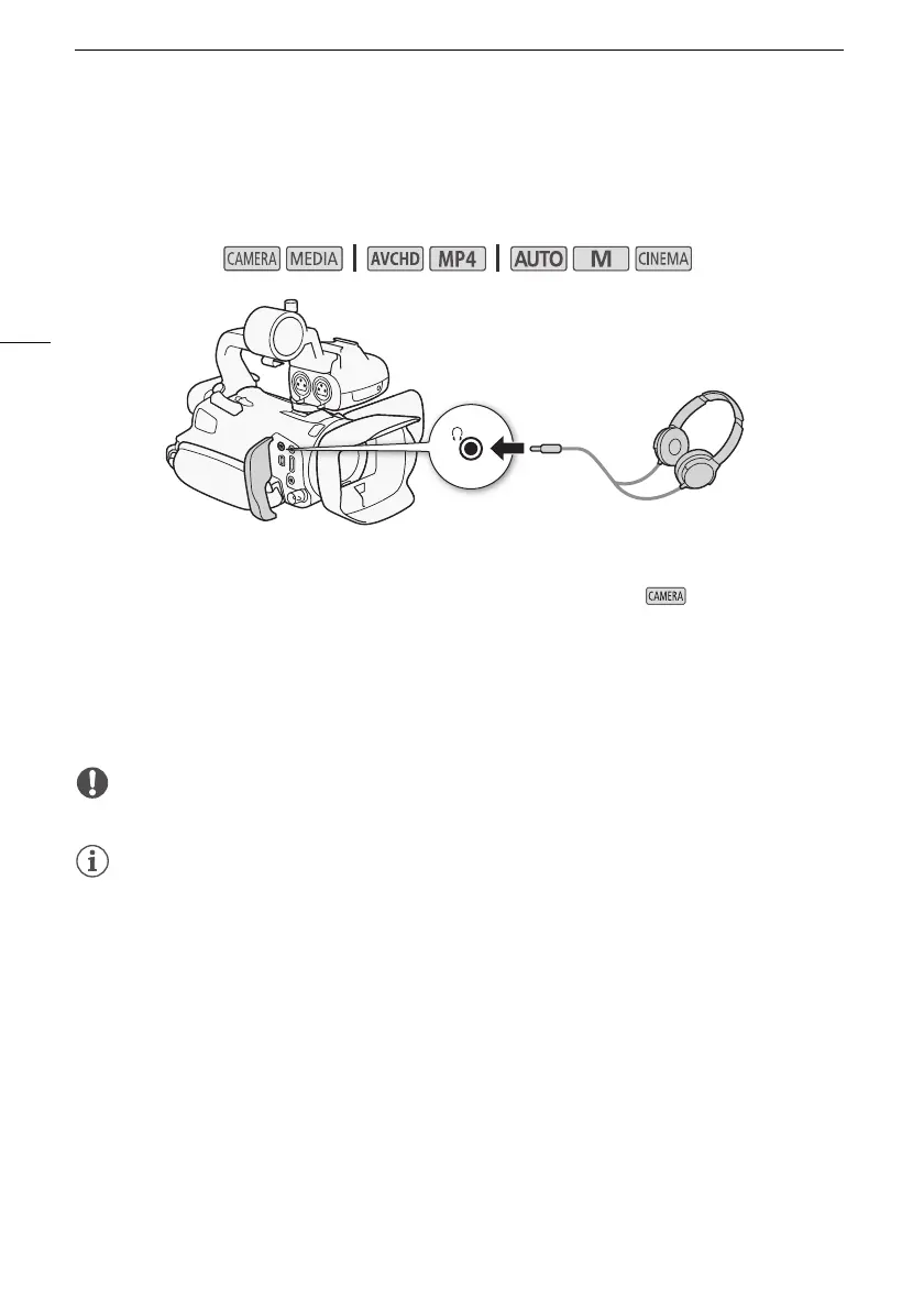 Use headphones for playback or to check the audio level while recording. The following procedure