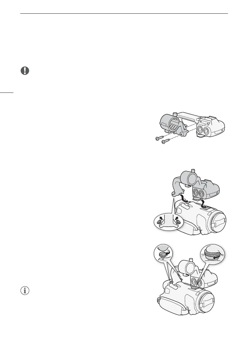 • Be careful not to drop the camcorder when attaching, removing or adjusting the various