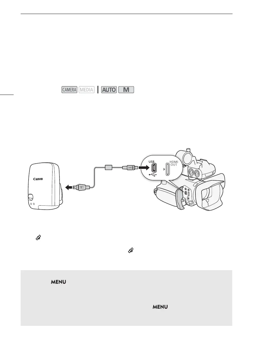 Turn off the camcorder and the receiver. Connect the receiver to the camcorder’s USB terminal using