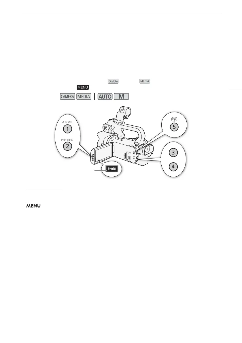 The camcorder offers 5 assignable buttons on the camcorder's body and an onscreen button (touch