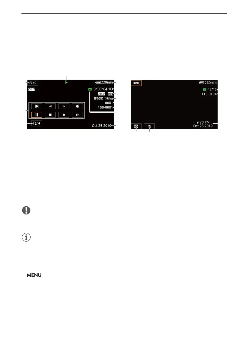 • Depending on the recording conditions, you may notice brief stops in video or sound playback