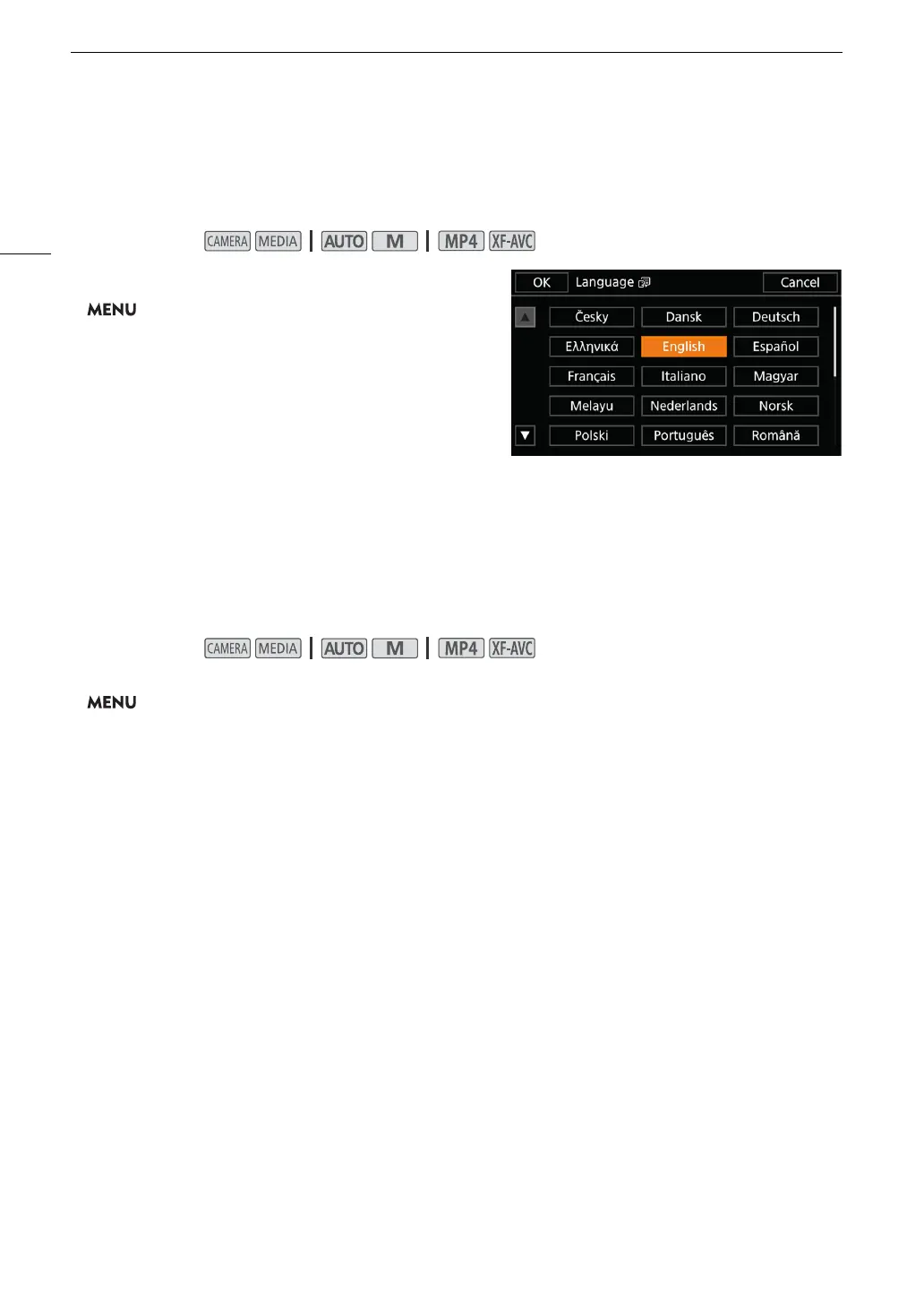 2 Select the desired language and then select [OK].