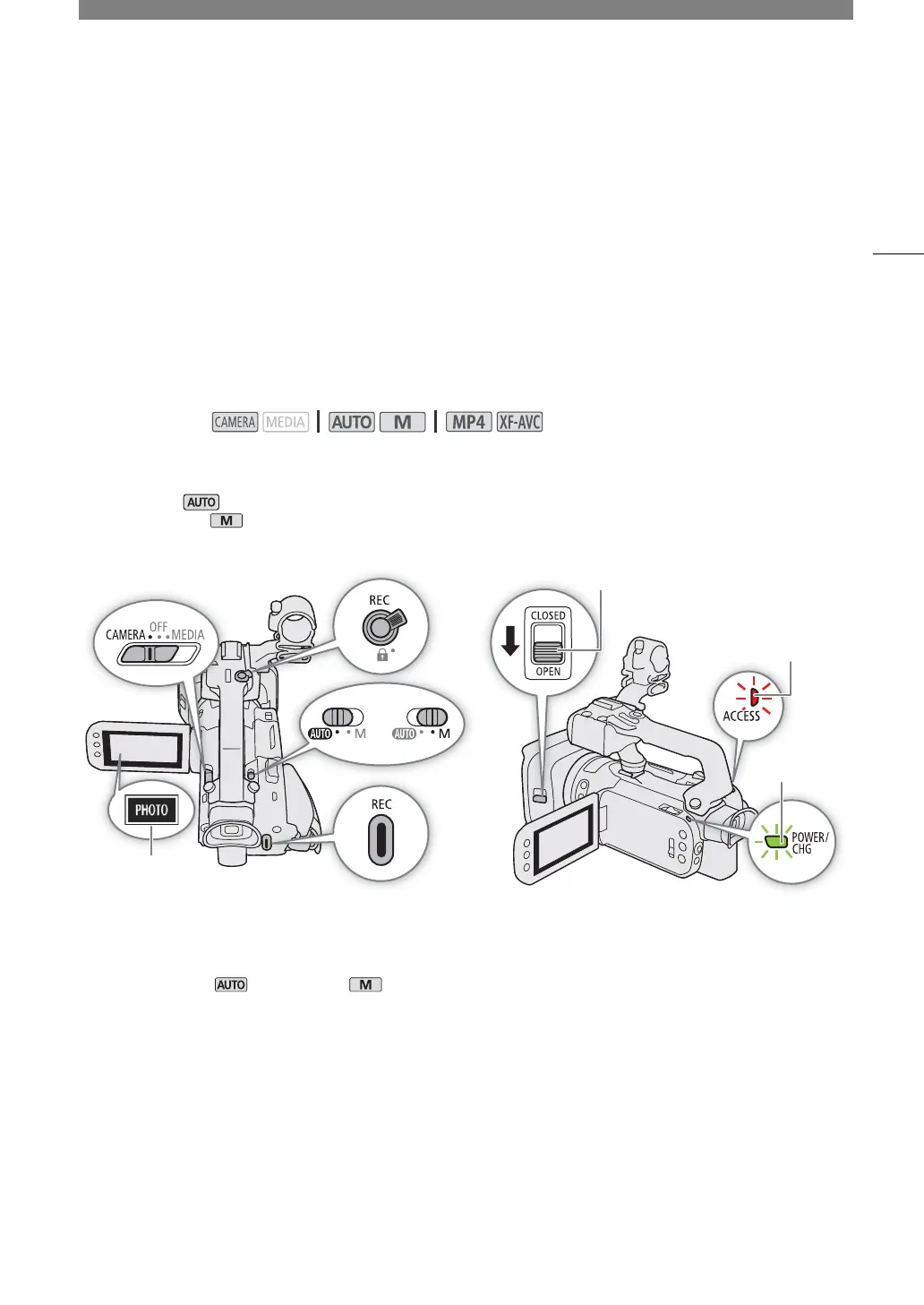 This section explains the basics of recording clips* and photos. For details on recording audio, refer to Recording
