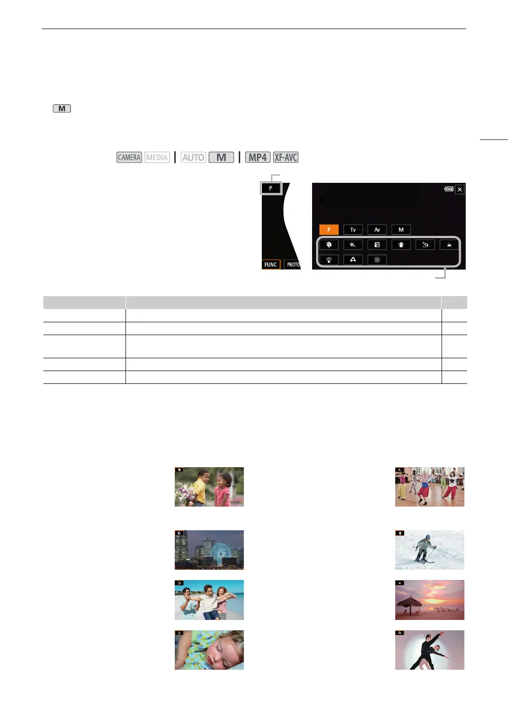[’ Programmed AE] The camcorder automatically sets the shutter speed, aperture and gain. 66