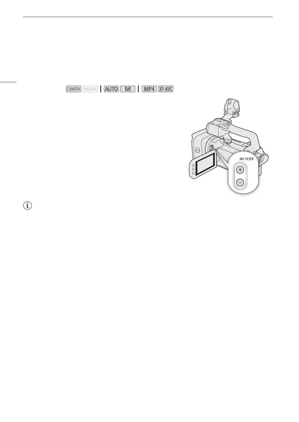 the same way as the camcorder’s ND FILTER + button.