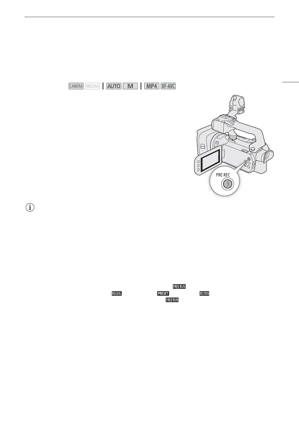 time code running mode will be changed automatically to [ Free Run] when pre-recording is activated.