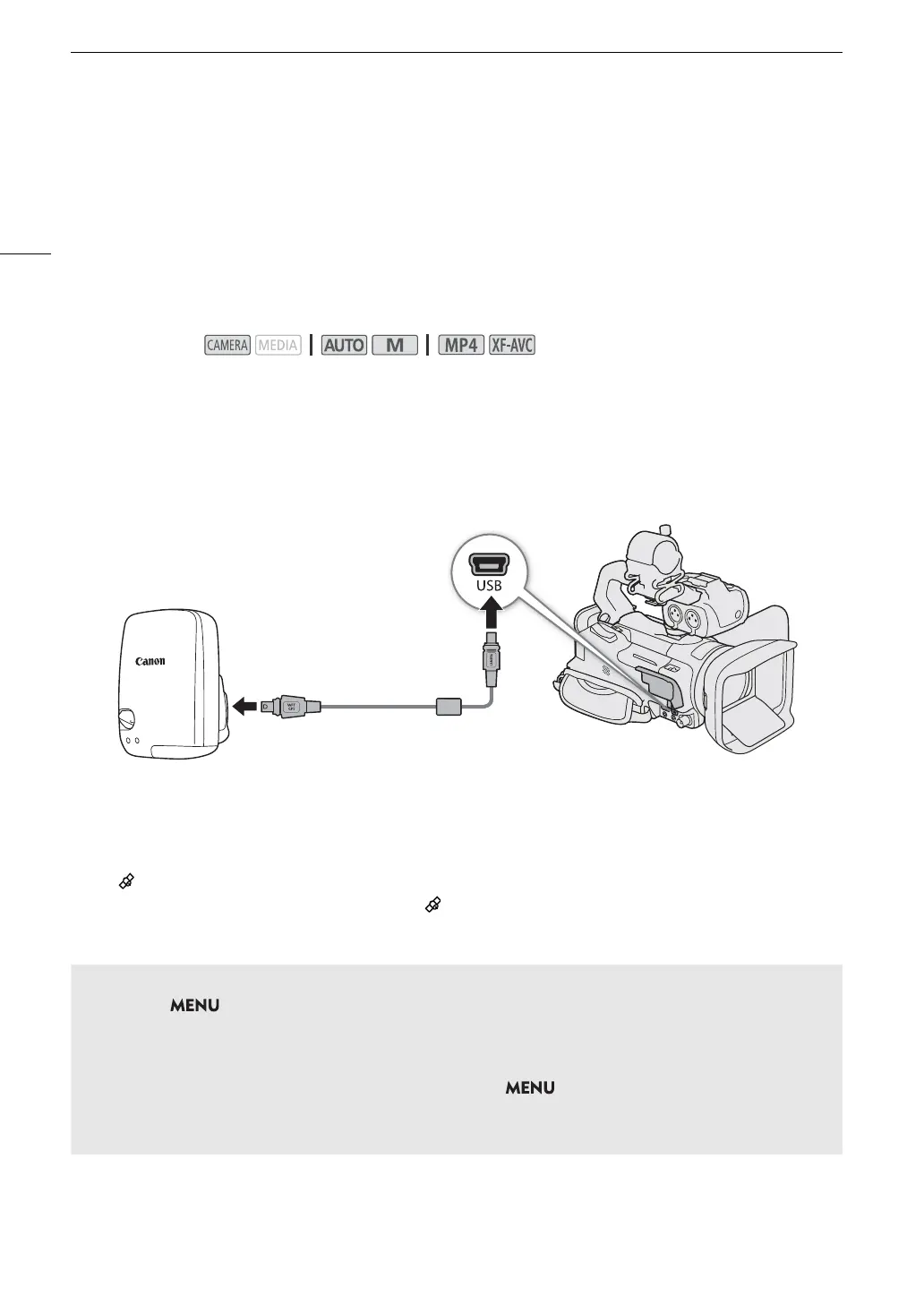 When the optional GP-E2 GPS Receiver is connected to the camcorder’s USB terminal, the camcorder will