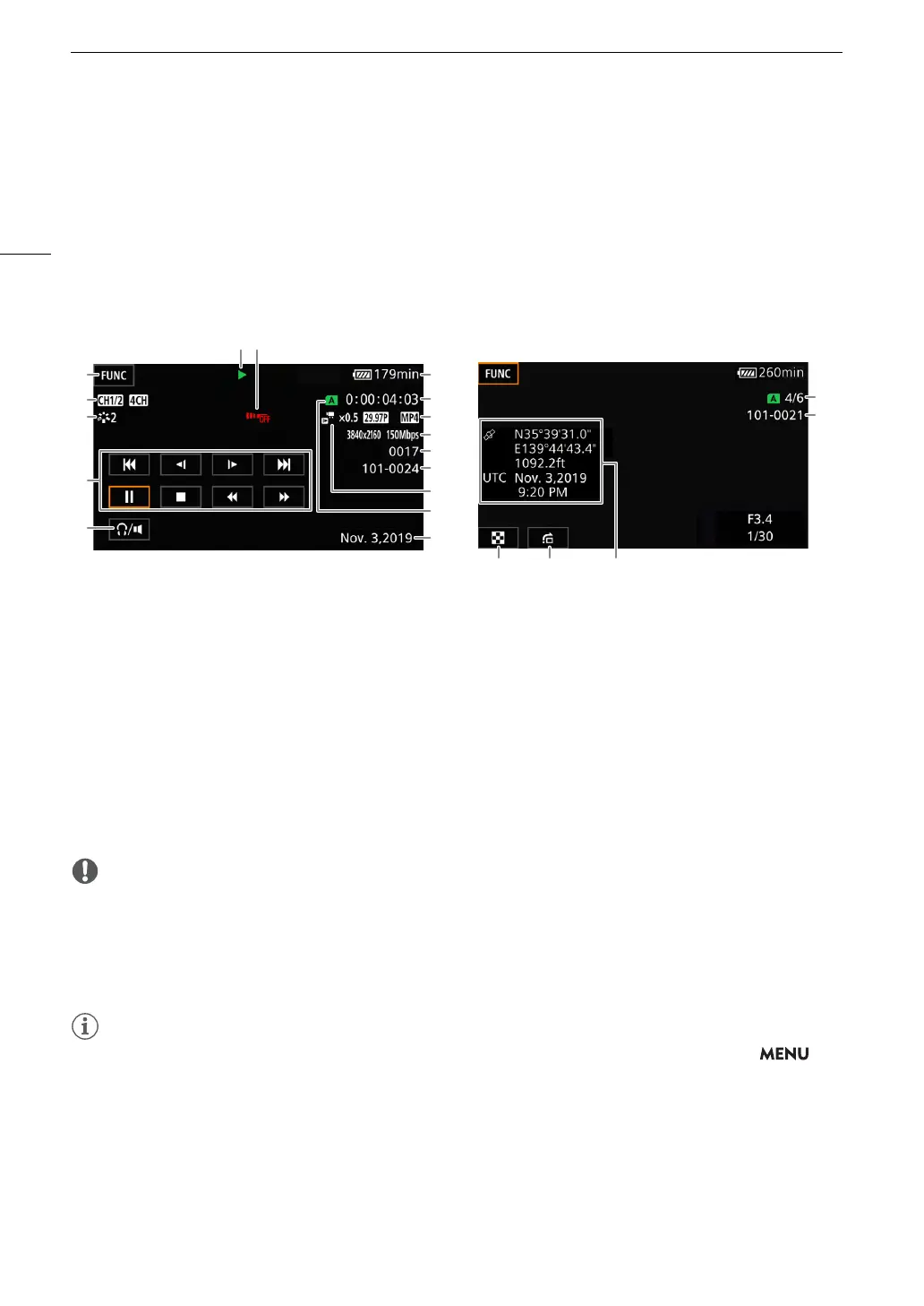 • Depending on the recording conditions, you may notice brief stops in video or sound playback between clips.