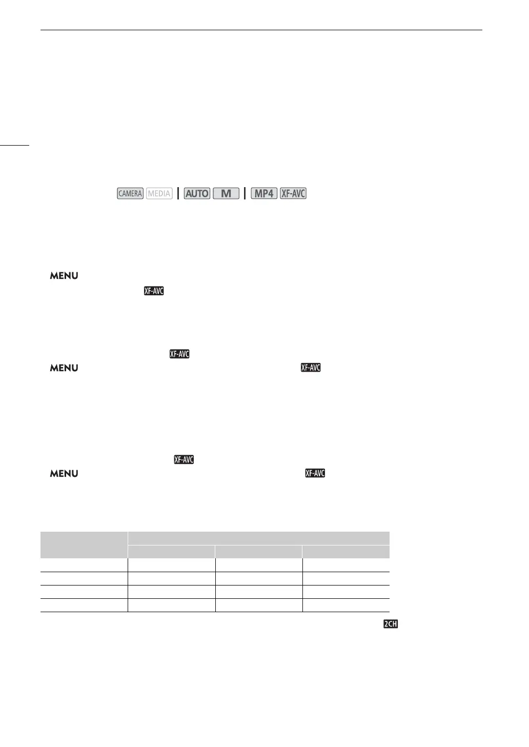 2 Select [¸ MP4] or [ XF-AVC] and then select [X].