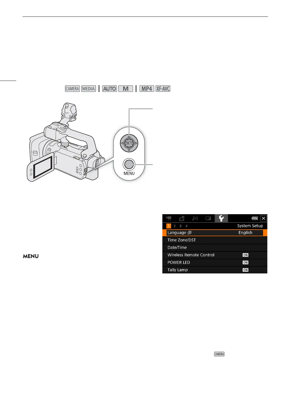 • In the example, the B icon, corresponding to the [System Setup] menu.