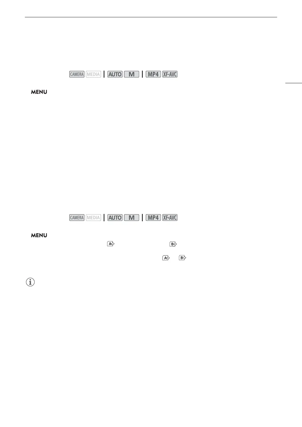 • Relay recording is available from SD card slot A to SD card slot B, and vice versa, but the switch will be
