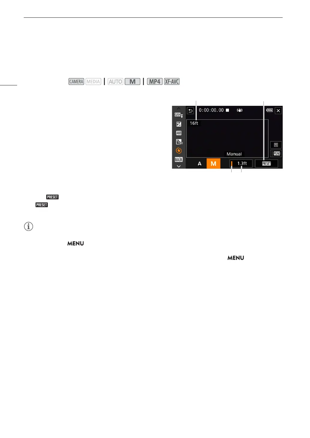 • The preset focus position will be canceled when the camcorder is turned off.