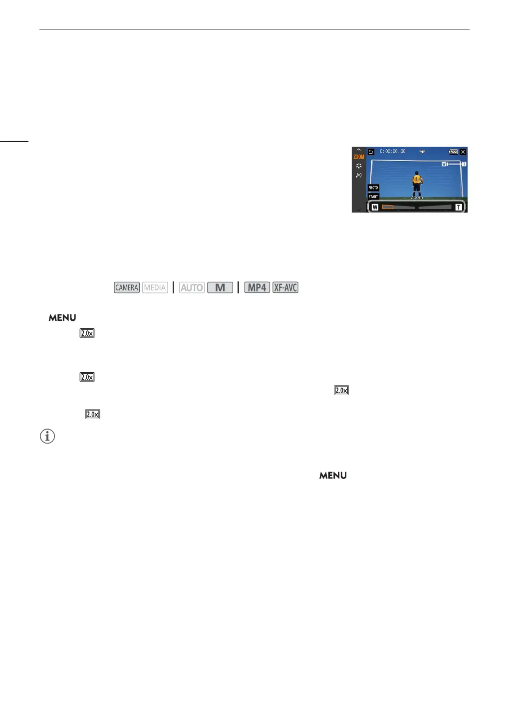 Using the digital tele-converter, you can digitally increase the focal length of the camcorder by a factor of approx.