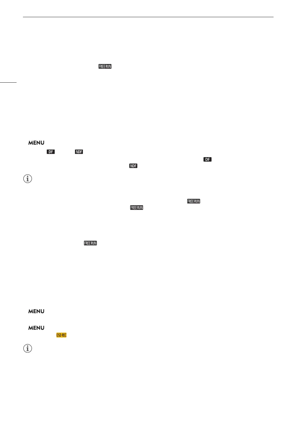 • When you are using the [ Free Run] running mode, the time code will continue running as long as the