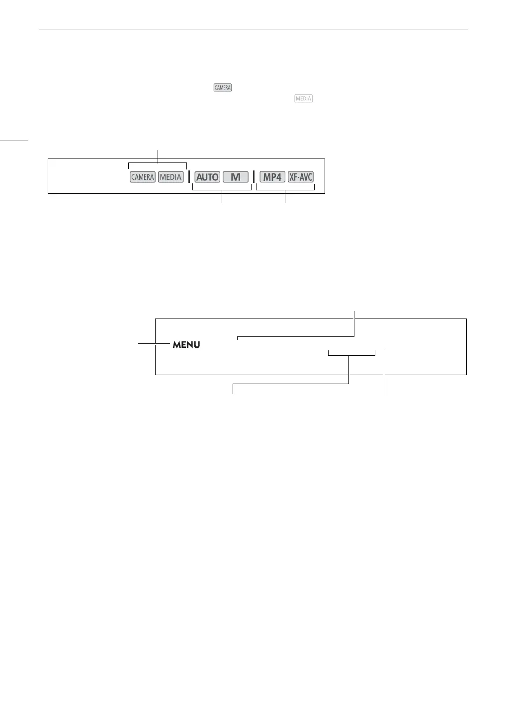 operating mode or video format shown; a non-shaded icon (like ) indicates that the function cannot be