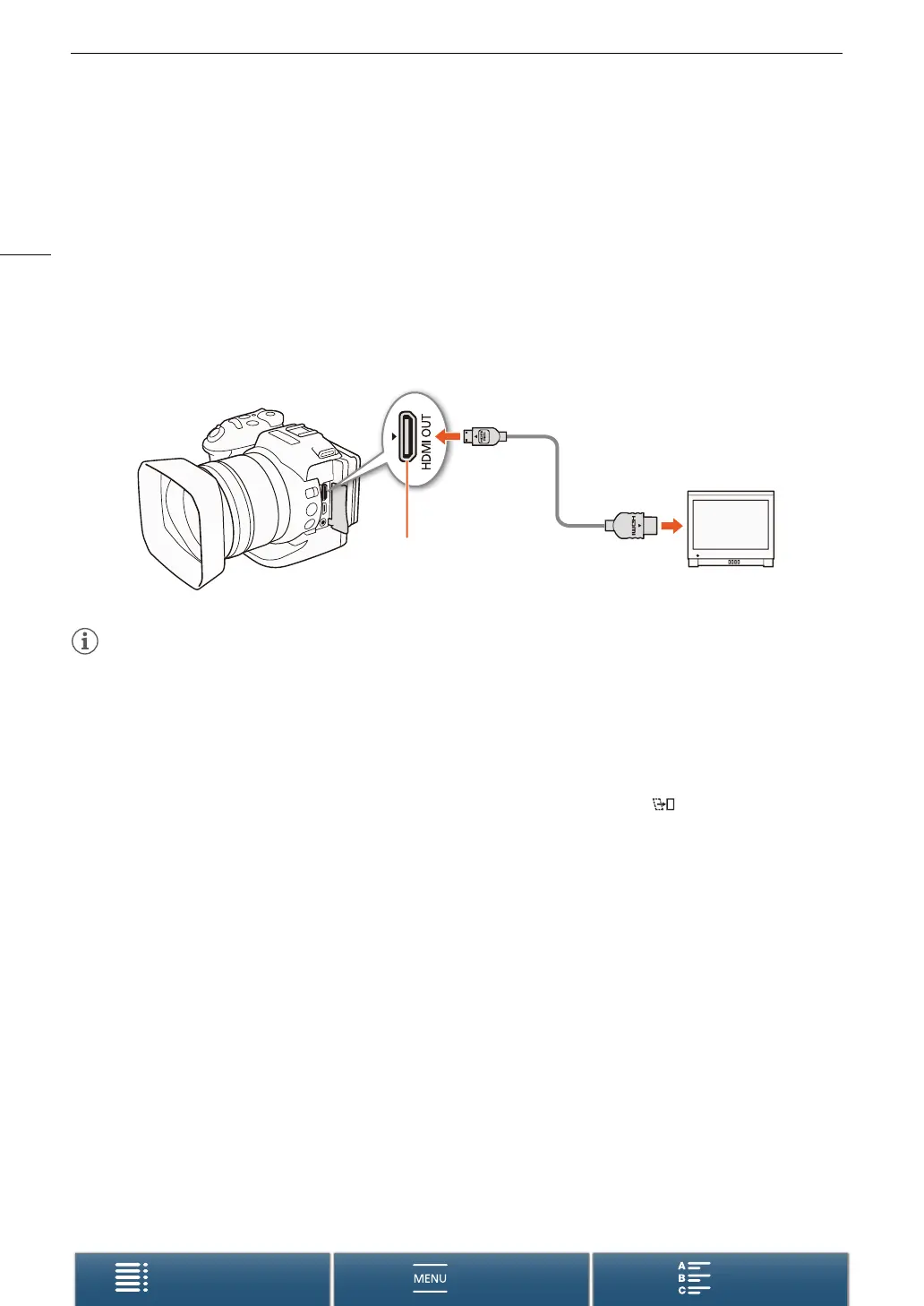 • The HDMI OUT terminal is for output only. Do not connect the camcorder to another device’s output terminal