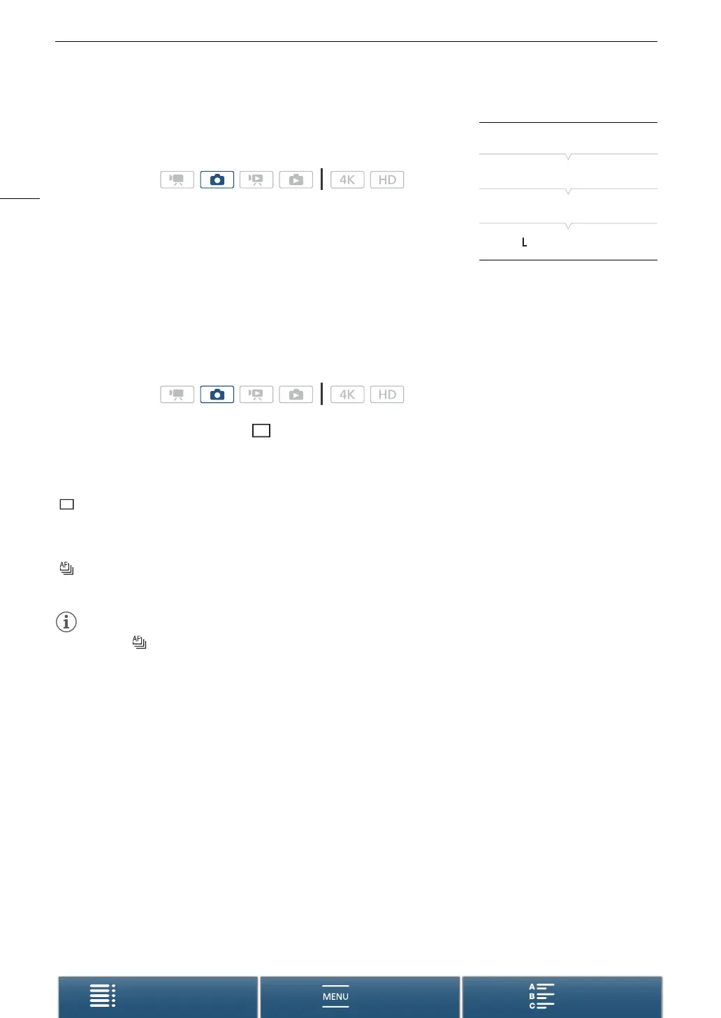 focus applied to the first photo will also be applied to the entire series. The camcorder will