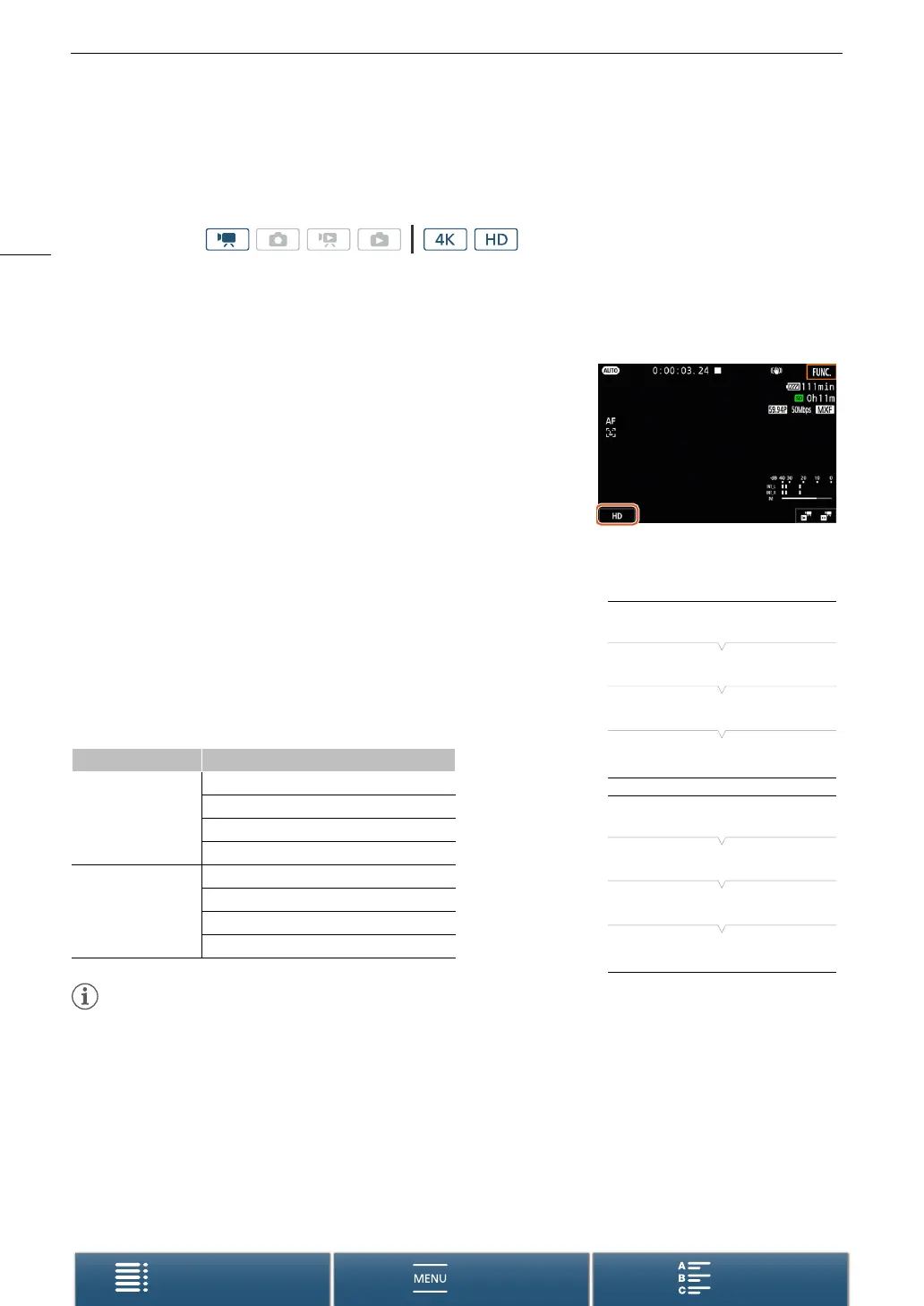 [3 Recording Setup] > [1] > [4K Recording] or [HD Recording]
