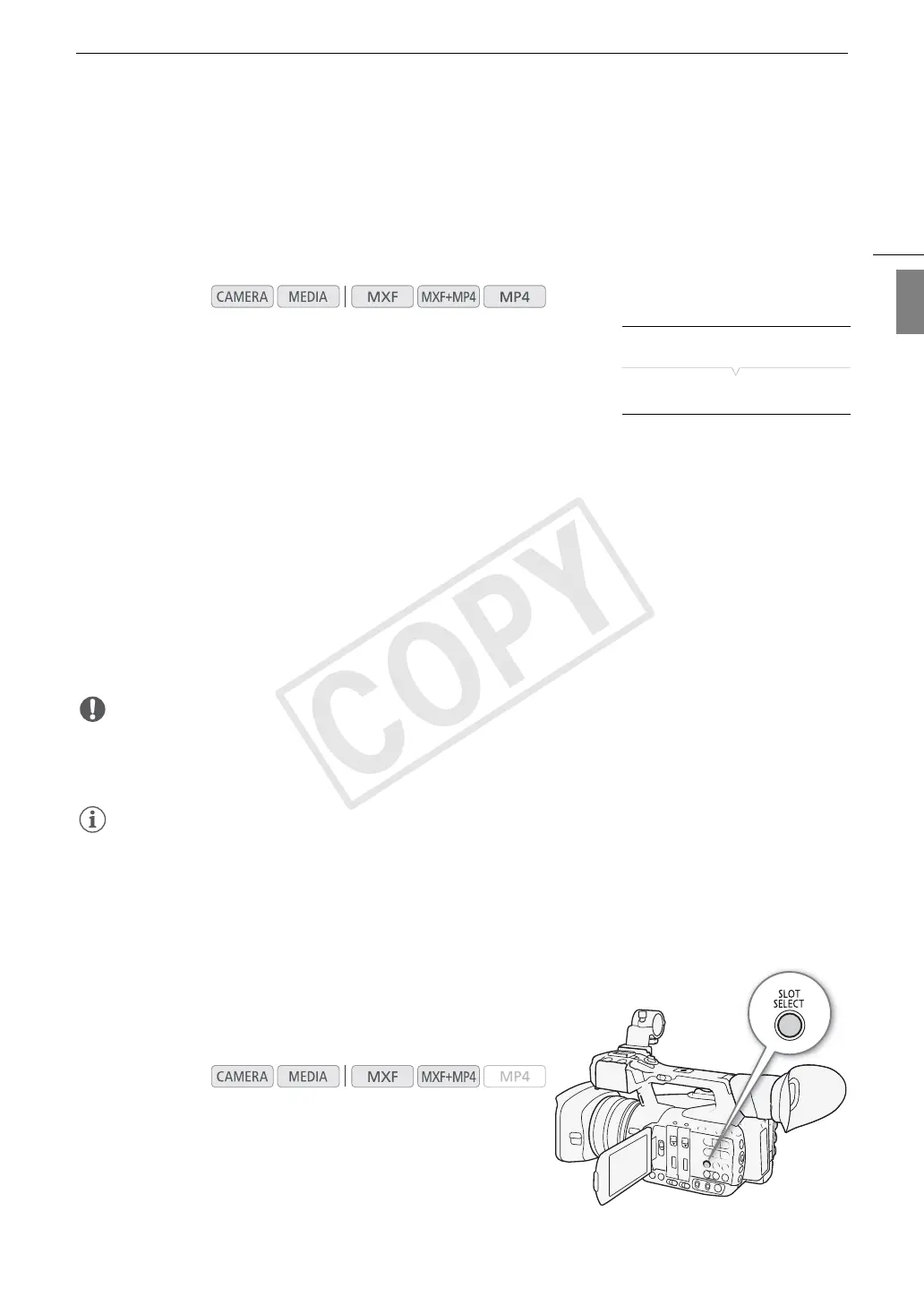• Initializing a recording media will permanently erase all data, including MXF clips with an $ mark and custom