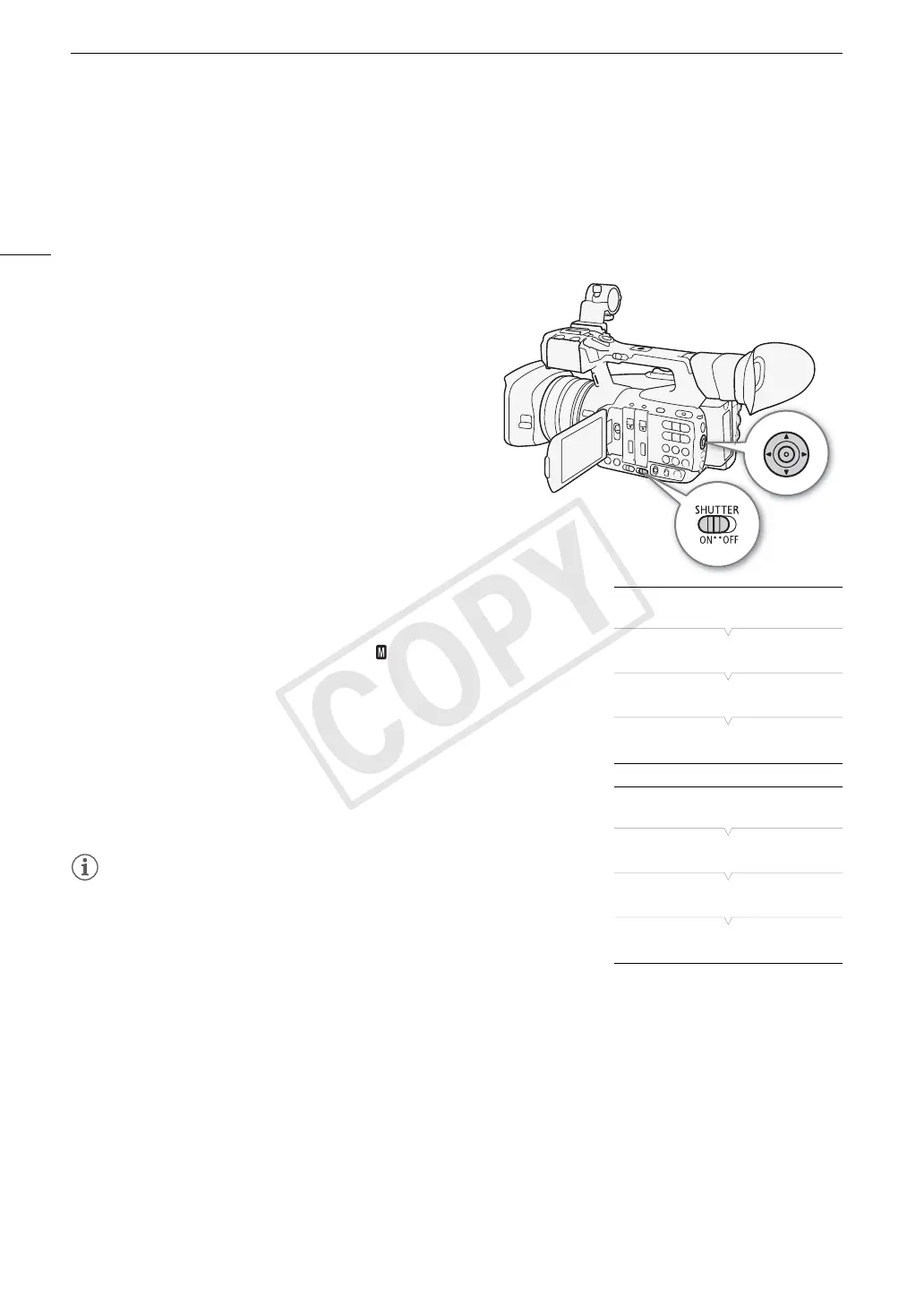 1 Set the SHUTTER switch to ON.