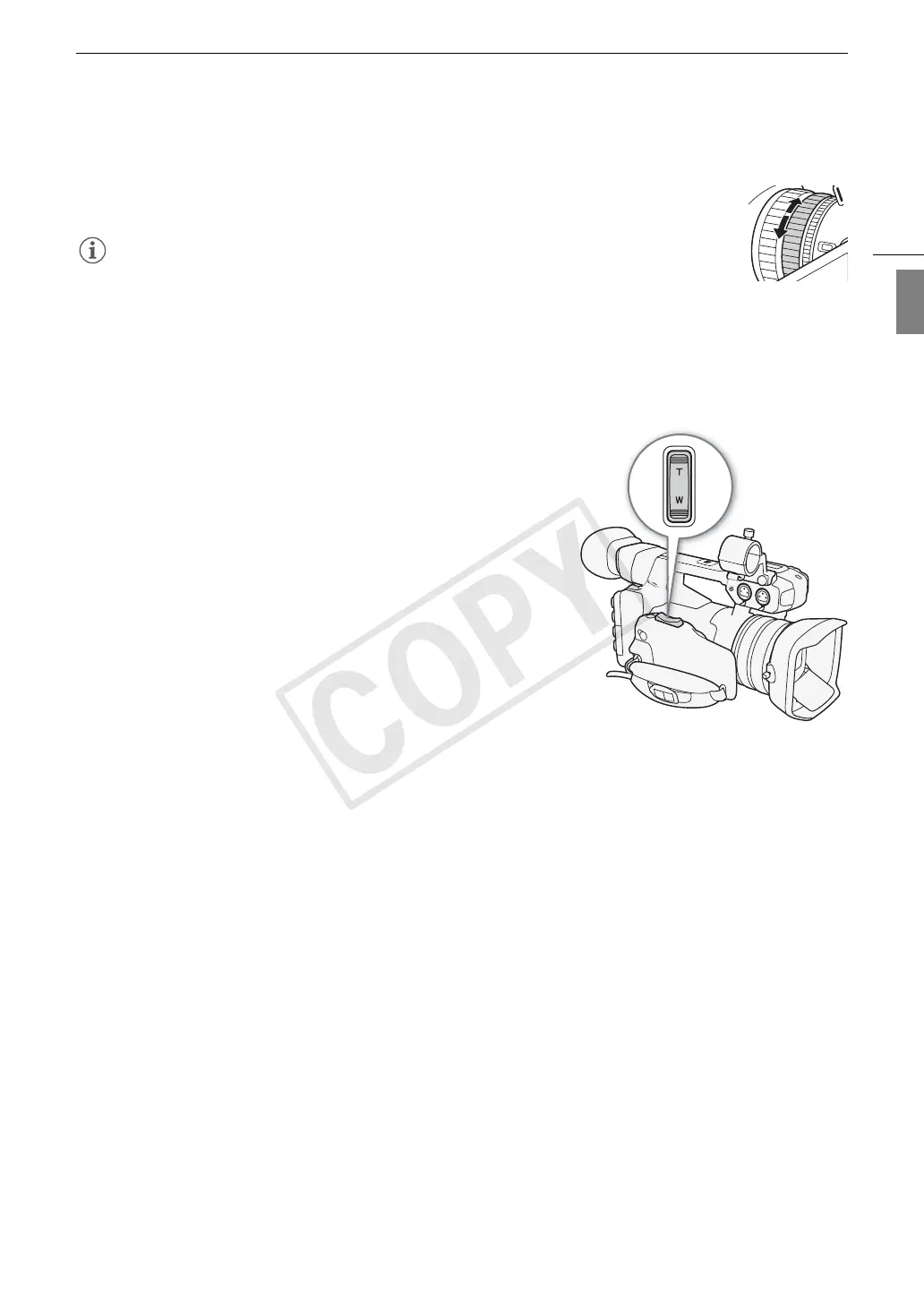 Zoom in and out on a subject by turning the zoom ring. The zoom speed depends on how fast