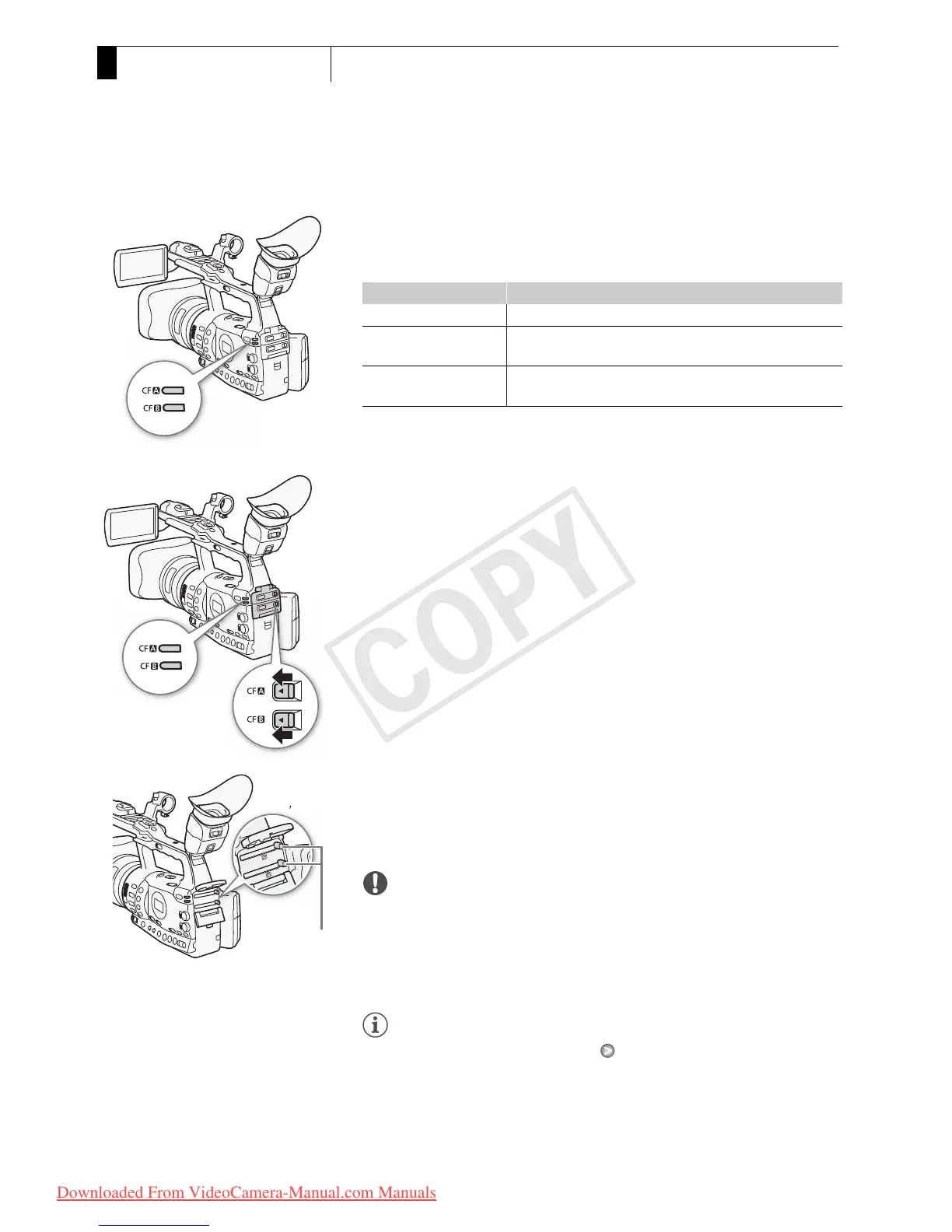 • The CF card slot cover will open upward (slot A) or downward