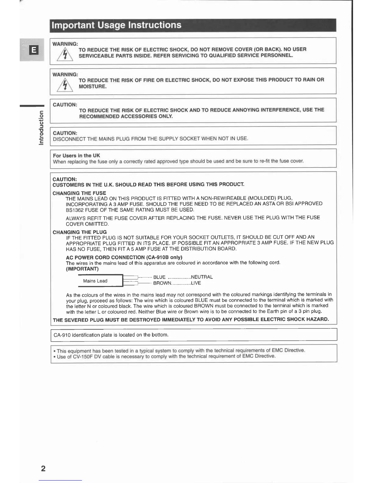 Canon XM1 - Important Usage Instructions; Safety Warnings and Cautions; Fuse and Plug Guidelines (UK Users); AC Power Cord Connection
